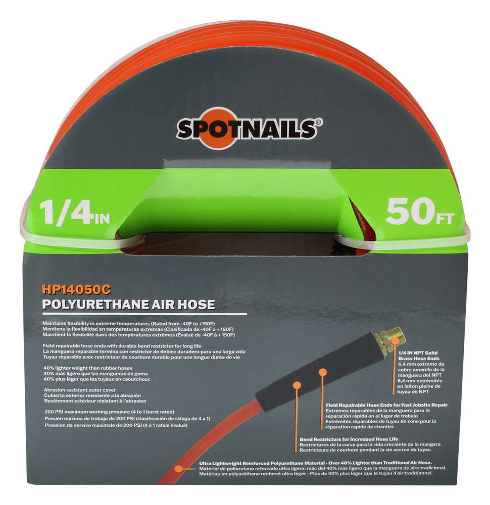 1/4″ x 50 Ft Polyurethane Hose w/ Coupler and Plug [HP14050C]