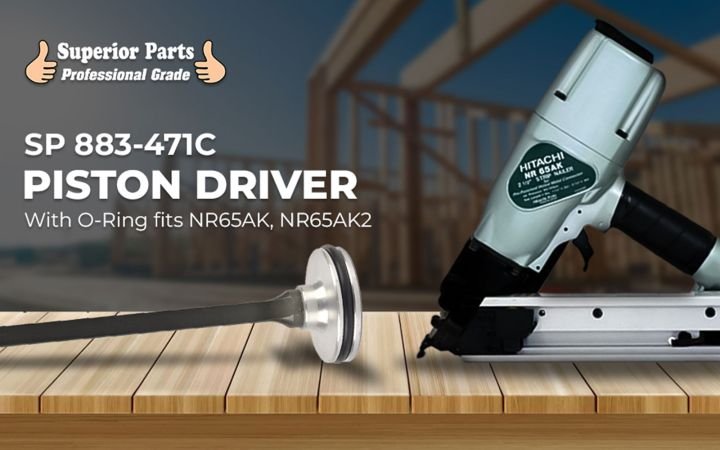 Superior Parts SP 883-471C Aftermarket Hitachi Piston Driver Assembly Japanese Carbide with O-Ring. Fits NR65AK Nailer. Aluminum is crimped into the UNI-LOK grooves of the shaft to prevent unscrewing. Hardened steel lock tite and micro-mechanically locked piston driver interface. Guaranteed never to unscrew.